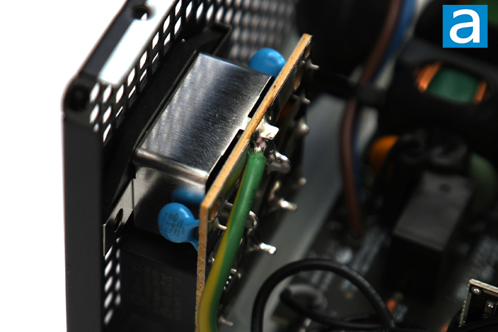 Starting with the transient filter stage, there is a total of two X-capacitors and four Y-capacitors near or around the input. This is twice the minimum amount of X and Y capacitors recommended. In addition, we have two common mode chokes and a metal oxide varistor. The MOV helps with suppressing voltage spikes. Considering some modern-day PSUs are missing MOVs, I am happy to see it here.