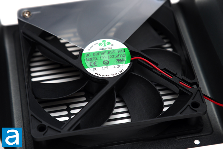 As for cooling, a single 120mm Poweryear PY-1225M12S fan is connected to the mainboard of the power supply. This is a sleeve bearing fan, which is common for budget-oriented power supplies. From the label, you can see this fan operates at 12V and 0.26A. As we mentioned previously, there is no zero RPM fan mode with this power supply, so this fan will always spin when the unit is turned on. Once again, this is in contrary to their product page at press time, which claims the HELIOS P2-750G features a hydraulic bearing fan with silent mode operation.
