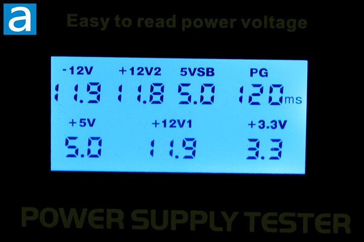 Voltages with minimal load are within 2% of the expected voltage, which is a basic requirement of power supplies out of the box. This power supply is ATX 3.0 compliant and officially supports Alternative Sleep Mode with 100 to 150ms PG specifications, and this is indicative of the 120ms power good signal. The ATX design specifications state a PSU's PG is required to be between 100ms and 500ms, with 250ms maximum for Non-Alternative Sleep Mode and 150ms for Alternative Sleep Mode.