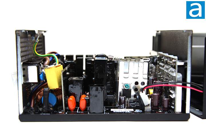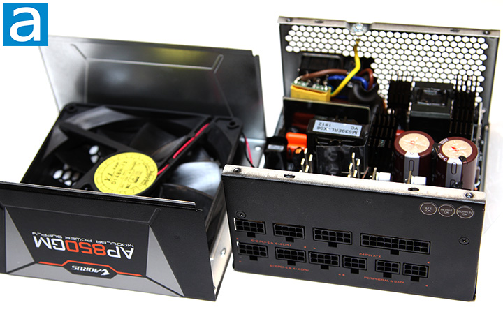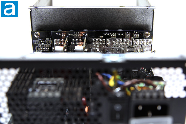 At the back, we have a large daughterboard covering the entire rear panel for the modular cable sockets. All modular sockets at the bottom are soldered directly to the main PCB after the secondary stage to reduce power transmission loss. The output connector configuration can be seen on the previous page. Overall, the internal build quality of Gigabyte's AORUS P850W 850W power supply is excellent -- something we would expect from what we have seen from the company in the past, even if this is the first power supply from them. Components are arranged very well for optimal cooling with minimal wires running around inside, and solder points on its black PCB is quite clean in general. I would say the Gigabyte AORUS P850W 850W is generally very good with regards to the selection of components used under the hood; appropriate for its performance class.