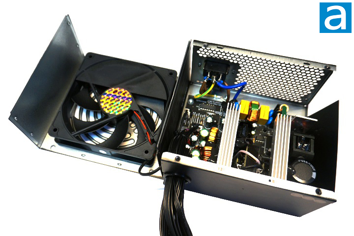 In terms of cooling performance, there are two things we need to pay attention to for a power supply unit; namely the heatsinks and cooling fan. In this case, we can see two long heatsinks, one short heatsink, and one cooling fan. The number of heatsinks inside the power supply unit is abundant thanks to the organized layout. The size of the fan is 120mm in diameter. A smaller fan is used to keep the enclosure small. According to the manufacturer's website, the BOK BDH12025S uses silent hydraulic bearing to keep noise and durability in check.