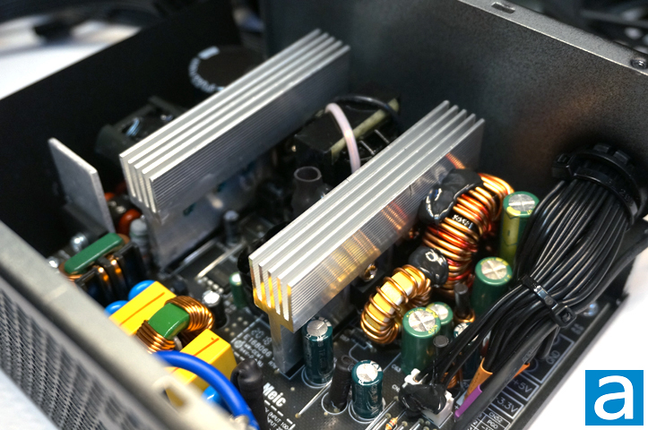 Interestingly, I do not see any electrolytic capacitors on the secondary side. These polymer capacitors are from China; the majority of them are made by ChnCap, which is a company located in Shenzhen, China. For a modern power supply unit, the power output from the rectifiers is +12V. The +12V output of the power supply unit can just directly use the power from the rectifiers. However, the +5V and +3.3V outputs are converted from the +12V output. The conversion functionality is mainly realized by the components on the main PCB. Meanwhile, there is a Weltrend WT7527 supervisor IC to realize over/under current and over/under voltage protection. More information about the parts mentioned in this review can be found from their respective datasheets from the manufacturer's website.