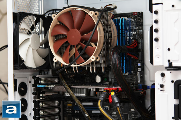 At this point, I am not entirely sure if higher clock speeds are attainable. I have not tested the processor on any other motherboard, and I did not spend a whole lot of time tinkering with the voltage and settings on my DZ77GA-70K either. As far as temperatures are concerned, the i7-3770K ran reasonably cool at stock voltages. As voltage increased, load temperature went up practically exponentially. Even with our setup -- a Noctua NH-C14 cooler, two 140mm fans on the heatsink at maximum speed, and two more 140mm case fans around the processor socket, the CPU core temperature still hovered around the 75 degrees Celsius mark. Do keep in mind I kept HyperThreading enabled, which will increase heat generation.