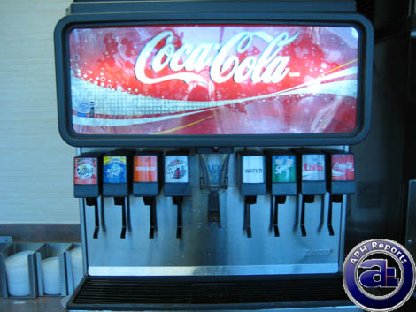 When I once again saw the same logo as before. The easily recognizable PresHott logo. Now I wondered what the Soda tasted like and was once again reminded of the barbeque. Just to be safe I let the person in front of me dispense his drink first. It looked like it was dispensing properly and had no troubles so I decided it was safe. Unfortunately this was not the case since he had dispensed ice from the ice machine just right beside it. It was fairly obvious something is wrong when the ice machine spews out boiling hot water in your cup. To say I was surprised would be an overstatement. I totally saw it coming but I chose to ignore it. I ignored this and just went on to eat my sandwich.