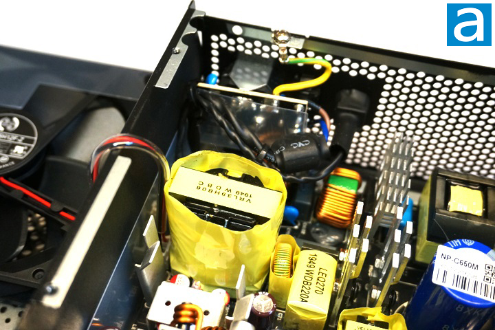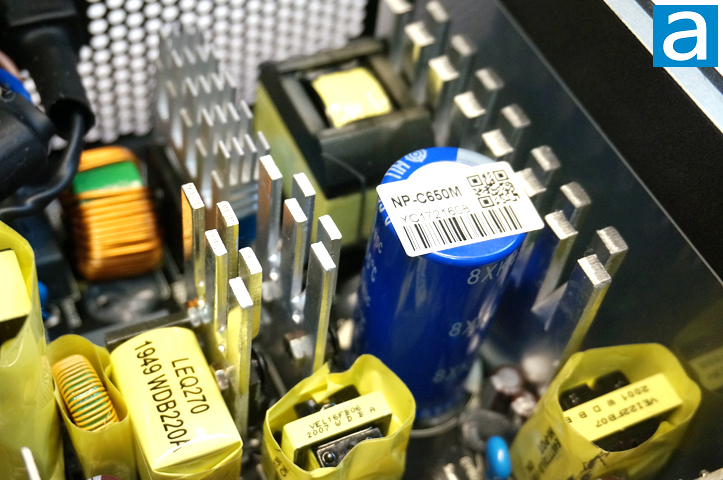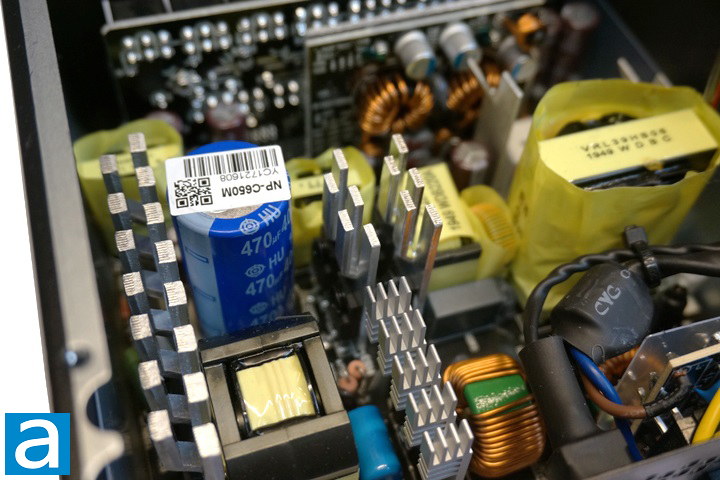 In terms of cooling performance, there are two things we need to pay attention to for a power supply unit; namely the heatsink and cooling fan. In this case, we can see a couple of heatsinks and one cooling fan inside of the NZXT C650 650W. The number of heatsinks inside the power supply unit is abundant thanks to the roomy chassis. The size of the fan is 120mm in diameter. A smaller fan is used to keep the enclosure small. According to the label on the fan, the HA1225H12F-Z from the Hong Hua uses fluid dynamic bearings to keep noise and durability in check. From the product's website, we can see the fan can provide up to 73.9 CFM airflow and rated noise level of 32.3dBA at the maximum speed of 2200 RPM.