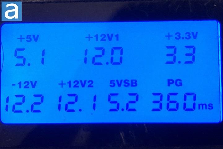 Voltages with minimal load are generally accurate, which is a basic requirement of power supplies out of the box. In this situation, all are well within 4%. The PG (Power Good) delay seems to be well within its rated range and general power supply standard at 360ms.
