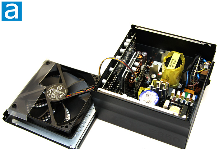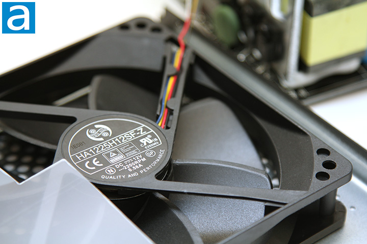 Lastly, we see a 120mm fan that provides cooling to the NZXT E850 850W's internal components. It is connected to the mainboard using a 2-pin connector. A 120mm fan is rather small nowadays for a power supply with a bottom mounted fan, but if not a lot of heat is being generated, it should not be much of an issue. A 120mm fan is used to keep the enclosure as small as possible, considering the E850 is only 150mm deep. Ong Hua is the fan OEM, with HA1225H12F-Z as the model number, as shown in our photo above. Further research indicates the HA1225H12F-Z is a fluid dynamic bearing fan specified at 0.58A for a maximum of speed of 2200 rpm. Fans with fluid dynamic bearings generally have much longer lifespans compared to sleeve bearing fans, and is quite suitable for this application.