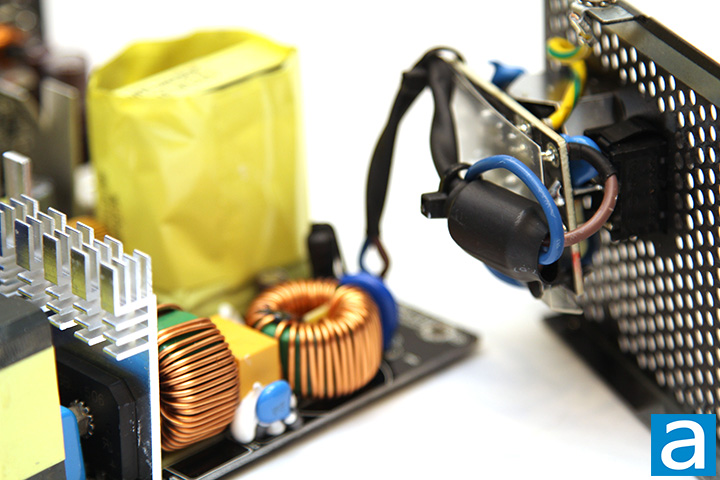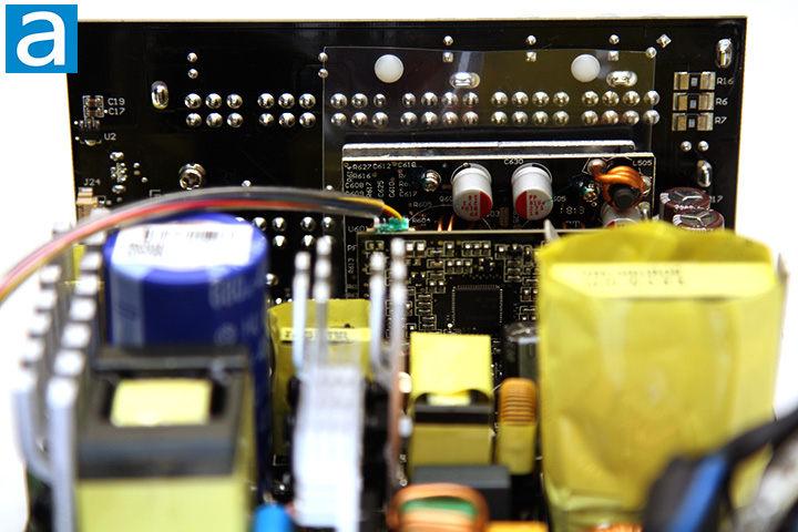 At the back, we have a large daughterboard covering the entire rear panel for the modular cable sockets. All modular sockets at the bottom are soldered directly to the main PCB after the secondary stage to reduce power transmission loss. The output connector configuration can be seen on the previous page. Overall, the internal build quality of NZXT's E850 850W power supply is excellent -- something we would expect from a Seasonic built unit. Components are arranged very well for optimal cooling with minimal wires running around inside, and solder points on its black PCB is quite clean in general. I would say the NZXT E850 850W is generally very good with regards to the selection of components used under the hood; appropriate for its performance class.