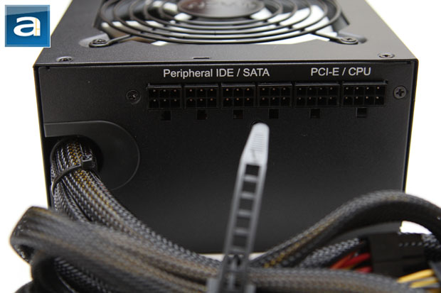 The rear cable connection panel is done nicely, albeit with upside-down labels in standard orientation once again. Compared to the Seasonic Platinum 1000W, the NZXT HALE82 750W is actually extremely simple. From the left in our photo above, as the label suggests, we have four sockets for SATA and/or Molex connectors (Dependent on the attached cable), followed by two 8-pin sockets for additional PCI Express and EPS 8-pin cables. Incompatible outputs will not physically fit into each other, so I think NZXT has done a great job in this regard. This simple array of available connectors should be more than sufficient for casual users and power enthusiasts alike.