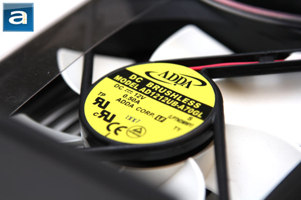 Lastly, we see a modestly sized 120mm fan that provides cooling to the NZXT HALE82 750W's internal components. It is connected to the mainboard using a 2-pin connector. Although it is not the largest fan you can fit in a standard ATX power supply, an overhead design provides lots of airflow at lower speeds for quiet operation in most cases. ADDA is the fan OEM, with AD1212UB-A70GL as the model number, as shown in our photo above. Further research indicates the AD1212UB-A70GL is a ball bearing fan specified at 0.50A with a maximum of speed of 2500 rpm. The rated airflow is 98.97 CFM and 43.3 Pa static pressure at 43.3 dB of noise. ADDA is known for making relatively quiet fans from our past experience, and being a Seasonic built PSU, one can only have high expectations from the NZXT HALE82 750W in this regard.