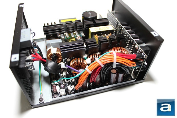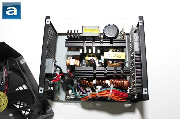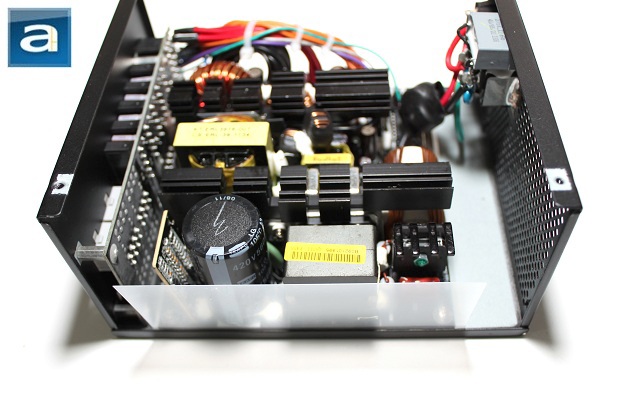 As with all power supplies that we open up, the warranty must be voided to take a look inside, and the OCZ ZT Series 650W power supply is no exception. Just remember that doing this will void your 5-year warranty once the seal over one of the screws is broken. Here at APH Networks, we void the warranty to take a look inside, so you don't have to worry about yours. The OCZ ZT Series 650W is made by Chinese manufacturer Great Wall. As you can see from our photo above, it shows an overhead view of the PSU itself. The components are decently spaced out with some extra room to spare on the left side for the best possible cooling with the least amount of heat congestion. Unlike most PCBs, the one inside the ZT Series is nicely colored black. There are only two black painted finned anodized aluminum heatsinks under the hood. This simple heatsink arrangement along with such a configuration of interior components allows for lower airflow impedance benefit.