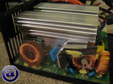 Generally, the primary filtering stage is done very nicely with three ferrite coils and one located in with two sides in contact with a heatsink. The bracket design of the heatsink are designed with gaps at the top to strike a balance between heat dissipation and airflow.