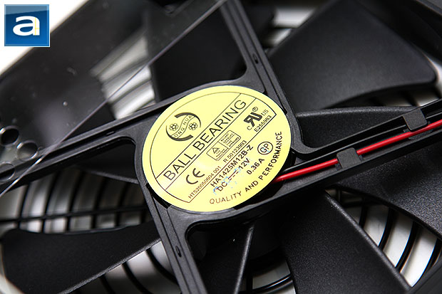 Lastly, we can see a large 140mm fan that provides cooling to the PC Power & Cooling Silencer Mk III 1200W's internal components. It is connected to the PSU via a 2-pin connector. This is the largest fan you can fit in a standard ATX power supply. With an overhead design, it can provide lots of airflow at lower speeds for quiet operation in most cases. Hong Hua is the fan OEM, with model number designated as HA1425M12B-Z. Further research indicates the HA1425M12B-Z is a ball bearing fan specified at 0.36A with a maximum of speed of 2000 rpm. I don't know anything else about the fan, since I got this information from people who has seen this fan in the past in other power supplies, haha. Even good old Google does not turn out any datasheets -- not even the manufacturer's website.