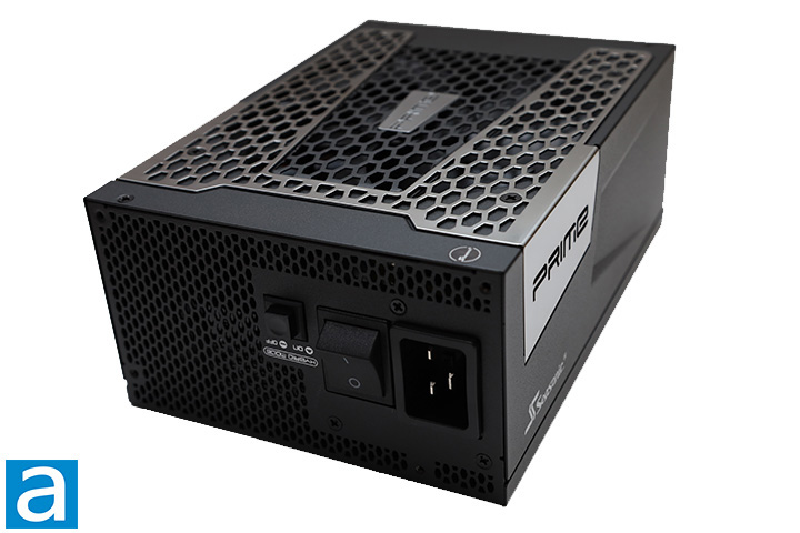 The low resistance honeycomb mesh design is implemented to maximize airflow and minimize air resistance. This is done as heat needs to leave the power supply as easily and efficiently as possible, because the PRIME TX-1300 1300W incorporates only one 135mm fan at the bottom. It is implemented in a reasonably efficient manner, as the power input block takes up a little more than the minimum amount of room physically required. As with all active PFC power supplies, the Seasonic PRIME TX-1300 1300W has an automatic full range 100V to 240V AC line voltage selection, so the user does not have to worry about manually selecting input voltage.