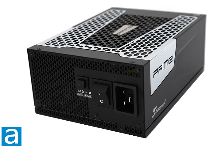 The low resistance honeycomb mesh design is implemented to maximize airflow and minimize air resistance. This is done as heat needs to leave the power supply as easily and efficiently as possible, because the PRIME TX-1300 ATX 3.0 1300W incorporates only one 135mm fan at the bottom. It is implemented in a reasonably efficient manner, as the power input block takes up a little more than the minimum amount of room physically required. As with all active PFC power supplies, the Seasonic PRIME TX-1300 ATX 3.0 1300W has an automatic full range 100V to 240V AC line voltage selection, so the user does not have to worry about manually selecting input voltage.