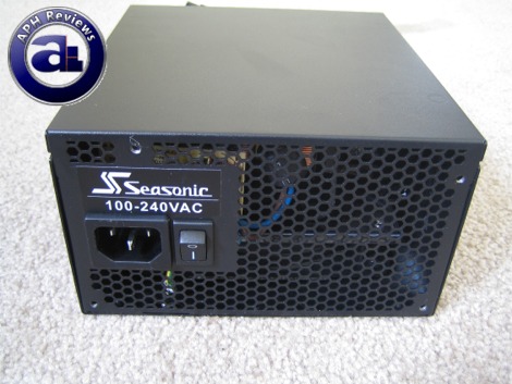 Like the original Seasonic M12, the M12II retains the same subtle design -- no fancy colors, no fancy LEDs. The black matte finish of the power supply evokes a sense of elegance and cleanness on its own. At the back is the same honeycomb mesh design to maximize airflow and minimize air resistance. This is done as heat needs to leave the power supply as easily and efficiently as possible, because the Seasonic M12II incorporates only one 120mm fan at the bottom. Standard power supply on/off switch is located to the right of the male connector for power input. As with most new power supplies, the Seasonic M12II has an automatic full range (100V-240V) AC line voltage selection, so the user does not have to worry about manually selecting input voltage.