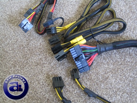 The only non-modular cables are the ATX 24-pin, ATX 4-pin, and EPS 8-pin connectors. The rest are all removable; there are two PCI Express and six Molex/SATA output connectors at the back of the power supply. The included cables generally provide an excellent amount of connectors -- tons of SATA, tons of Molex, and one of the PCI Express power connectors are the 8-pin ones -- for one 8-pin and one 6-pin PCIe power connector in total.