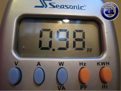 I'll borrow this picture from our PC Power & Cooling 610W Silencer report -- in which because they obtained the exact same results. The Active PFC on the M12II 500W worked fairly well, with a reported PF fluctuating between 0.98 to 0.99 (98% to 99%) -- higher the better.