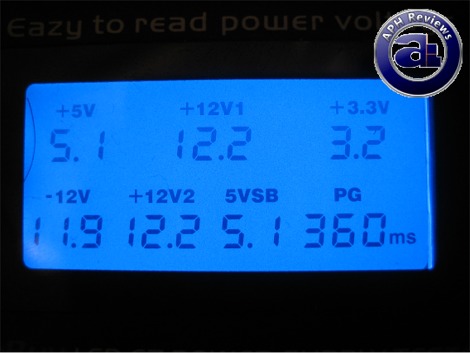 Voltages with minimal load is generally accurate, which is a basic requirement of power supplies out of the box. In this situation all are within 0.2V. However, the PG (Power Good) delay seems to be higher than its rating specification -- and worse than average, too -- at 360ms.