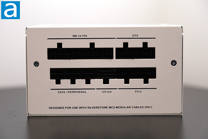 The rear cable connection panel is done nicely. SilverStone has made the labels correct side up in standard orientation. Similar connectors are grouped together and are laid out in a very logical manner. To ensure you know what is going on, they are all grouped and clearly labeled for minimal ambiguity. Starting from the left, we have the Motherboard section that supports an ATX 24-pin connector by two separate blocks next to each other. Next, there are two 8-pin connectors for EPS cables. In the SATA/Peripherals section, there are three outputs. This is followed by a 16-pin 450W 12V-2x6 PCIe 5.0 header. Lastly, there is a pair of PCIe headers. Incompatible outputs will not physically fit into each other, so SilverStone has done a great job in this regard. This is a reasonable array of outputs in correspondence number of connectors on each modular cable, which should be sufficient for casual users and power enthusiasts alike.