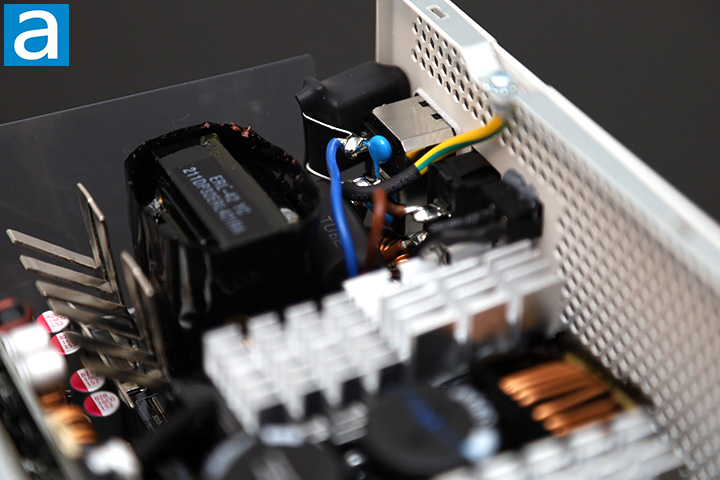 Pulling the enclosure apart and we got straight to the internal inspection. The transient filter stage is the first input stage of a computer power supply, so we will take a look at that first. SilverStone has always done a great job in the past to make sure their power supplies met or exceeded the recommended requirements, and the DA850R Gold 850W is no exception. The SilverStone DA850R Gold 850W has one metal oxide varistor, two metalized polyester X-capacitors, four ceramic Y-capacitors, and two common mode chokes. This is two times the amount of X and Y capacitors than recommended. Considering some PSUs have missing MOVs, I am happy to see it here as this component is used to stabilize spikes from the AC line.
