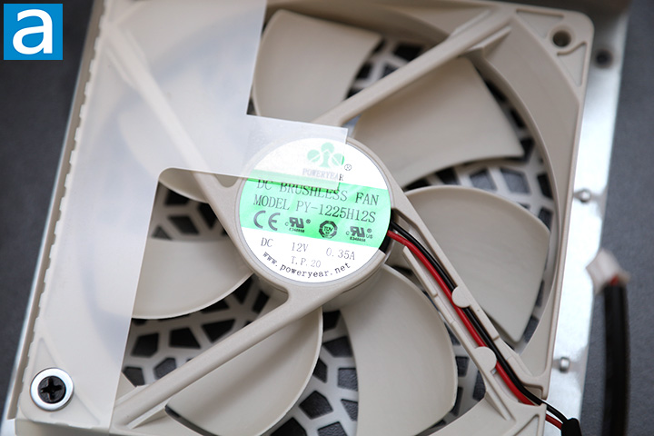 The fan model is Poweryear PY-1225H12S, as shown in our photo above. The PY-1225H12S is a sleeve bearing fan specified at 0.35A. The fan is not supposed to activate until the PSU is loaded to approximately 340W with semi-fanless mode active. As such, it should remain off for the most part, and even when it is on, the fan speed will vary with load. Fans with sleeve bearings have shorter lifespans compared to ball or fluid dynamic bearing fans, but are quieter than ball bearing fans and costs less than fluid dynamic bearing fans.
