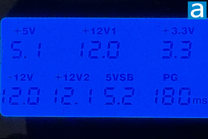 Voltages with minimal load are accurate, which is a basic requirement of power supplies out of the box. This power supply is ATX 3.0 compliant and officially supports Alternative Sleep Mode with 100 to 150ms PG specifications, so it looks like the PSU tester I used was not fast enough to pick up the true PG signal. The ATX design specifications state a PSU's PG is required to be between 100ms and 500ms, with 250ms maximum for Non-Alternative Sleep Mode and 150ms for Alternative Sleep Mode.