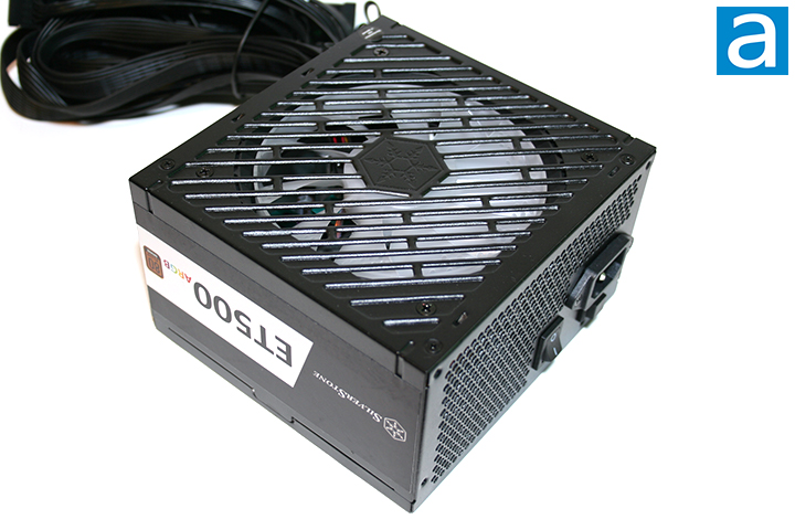 From the photo above, you can see the full branding is implemented on the sides, where SilverStone's logo and the product name are seen prominently displayed. The 80 Plus Bronze badge is also shown on both sides along with the brand and product logo. To ensure you will always see the text right side up, the orientation of it is different on both sides, so whatever side facing the user after installation will always be correct. The fan grille has a slit design and guards the primary and only cooling fan installed. The 120mm fan generates airflow by drawing air from the bottom of the power supply over its internal components to keep the temperatures at a reasonable level. Exhaust heat can leave at the back of the power supply through the secondary honeycomb mesh opening. Meanwhile, four screws secure the power supply enclosure together. A warranty seal extends over one screw of the power supply, so you cannot open the ET500-ARGB 500W without voiding its 3-year warranty.