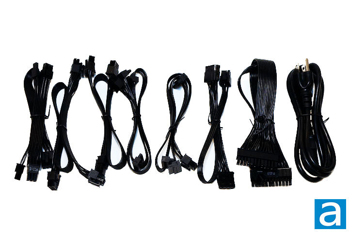 A total of seven modular power cables are included in the box and are bundled together using plastic twist ties. All modular cables are flat and black in color. The following cables are included out of the box:
