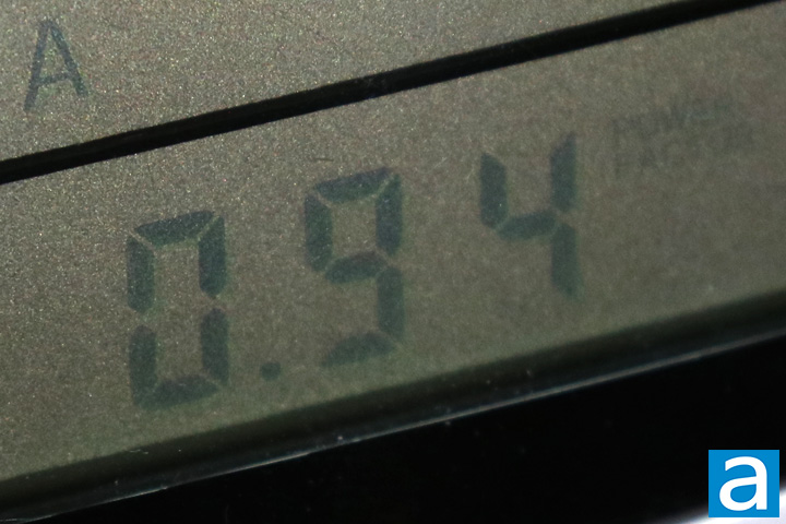 Active power correction is important to correct AC load line loss. In AC power, there are three components to it as there is a phase difference between current and voltage. This makes up the power triangle, which consists of the following: Average usable power (P, measured in watts), reactive power (Q, denoted as VA-R), and total power (S, written as VA). While these components all measure power, they are not the same as each other. What we want is the average usable power, with as little wasted reactive power as possible. The total power provided over the AC line is the magnitude of the two combined (sqrt(P^2+Q^2)). Power factor can then be easily calculated by P/S. The ideal value is 1.00, and this is where active PFC comes in. Under nominal loads, the power factor value of the SilverStone Nightjar NJ450-SXL 450W was at 0.94, indicating that the active PFC function is working well. It should approach 0.99 under full loads.