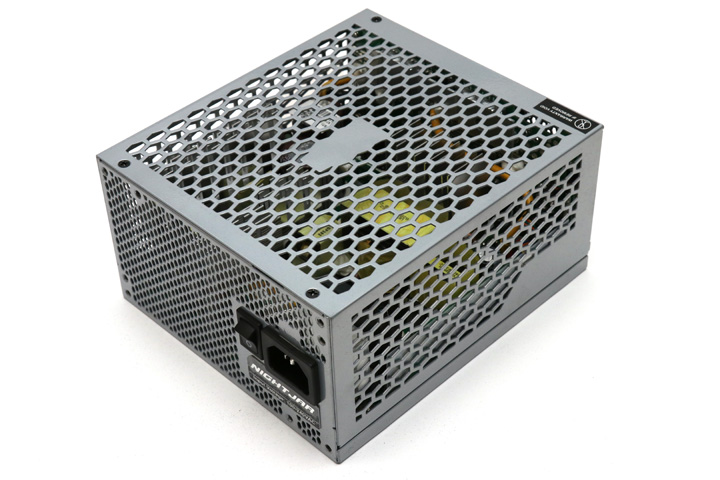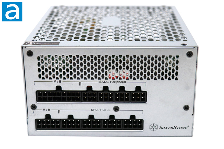 If you somehow skipped the first page and landed here, you can make an accurate guess of the platform of the SilverStone Nightjar NJ600 600W, especially since it bears a very clear resemblance to the Seasonic PRIME 600 Titanium Fanless 600W. It does not take much of a detective to see the physical outside is exactly the same with a few differences. The biggest difference of the SilverStone Nightjar NJ600 is its silver glossy exterior. While this will leave fingerprints showing, the whole power supply still looks really nice. You can also see all of the areas that were once labeled with Seasonic branding have either been cleared off or replaced with a "Nightjar" badge for the backside. Otherwise, the same open honeycomb pattern can be found on almost all of the exterior shell to allow air to freely flow in and out. With this being a fanless power supply, you probably want as much passive cooling as you can get for this unit. This may be affected by dust, but hopefully this is not too much of a problem. The external casing of the power supply is held with four screws at the top. One screw has a warranty seal over it and the only way to get inside the unit is to void the five-year warranty.