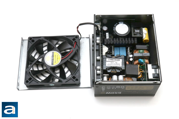 Speaking of cooling, the last component to look at is an important one, as it draws in air to let all these small components breathe easy. This is the 92mm Globe Fan connected to the mainboard of the power supply. Further research of the S0921512HB does not reveal a whole lot more about this fan, besides the fact it operates at 12V and 0.45A with fluid dynamic bearings for quieter operation. Overall quality of the fan is thus a bit of an unknown, but it should last at least the length of the warranty period.