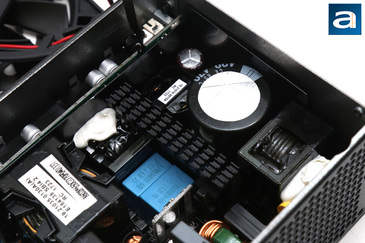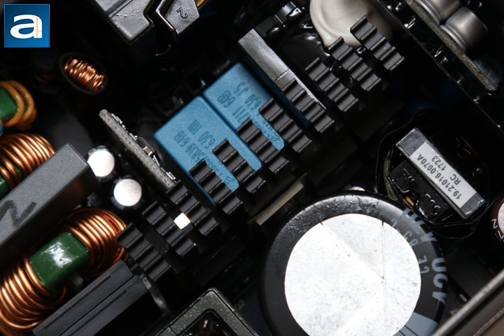 The power supply uses two unidentifiable rectifying bridges attached to each other. Once again, the space constraints make inspecting this power supply quite difficult. The active PFC circuit in the SilverStone SFX SX650-G 650W is controlled by an Infineon ICE3PCS01 chip. Other components in the active PFC circuitry were pretty difficult to get a closer look at, especially with how small this whole package is. Further research reveals there are four Toshiba K16A60W power transistors. These handle both the PFC circuitry as well as the switching duties, with two for each. A Champion CM6901X PFC as the PWM controller. Each K16A60W transistor is rated to deliver 15.8A at 100 degrees Celsius continuously, at a maximum resistance of 0.19 ohms. This on characteristic is called Static Drain-Source On-Resistance or commonly abbreviated as RDS(on). The more efficient the component is, the lower the RDS(on) value, since it wastes less power with lower resistance.
