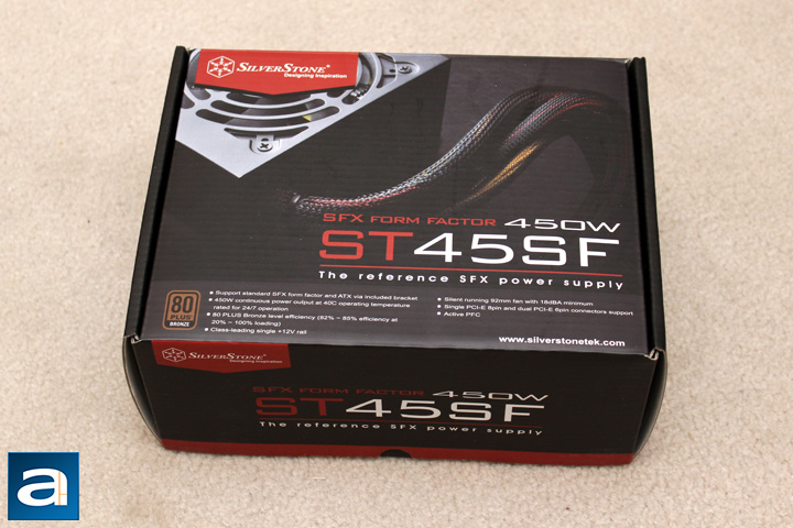 Today's review unit of the SilverStone ST45SF V3.0 450W arrived via SilverStone's standard choice of UPS Standard. With the guys in brown suits delivering our items, all of the products SilverStone shipped to us arrived in relatively good condition, though some boxes arrived in better conditions than others. In addition to this power supply, we also received the SilverStone SX800-LTI 800W in addition to two computer cases and some LED lighting accessory. The two cases, the Redline RL06 Pro and the Milo ML09 have already been reviewed, while the rest will be coming in the next few weeks.