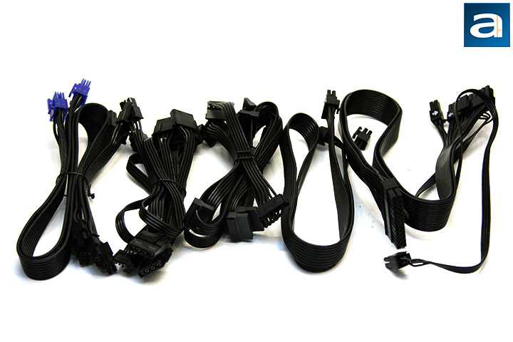 A total of eight modular cables are included out of the box. All modular cables are flat and easy to bend, making them extremely easy to work with. Surprisingly, all wires are 18 AWG, including high current PCI Express and ATX/EPS connectors. Usually, manufacturers will fatten them up to 16 AWG, but SilverStone opted out on that.