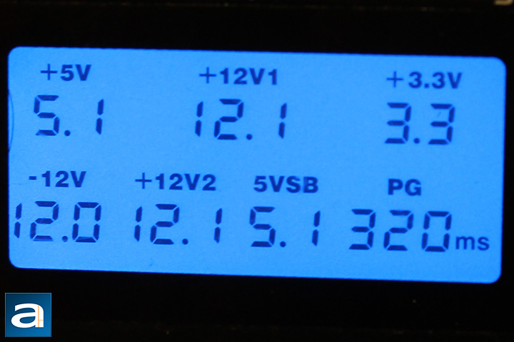 Voltages with minimal load are generally accurate, which is a basic requirement of power supplies out of the box. In this situation all are within 4%. The PG (Power Good) delay seems to be well within its rated range and general power supply standard of 320ms.