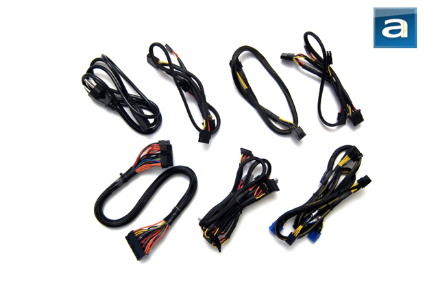 Up next, let us take a closer look at the included modular cables. These measurements are provided by the SilverStone. The lengths are reasonable compared to other products in the market today, and it should not raise any issues. Given that the mid-range capacity of this unit will most likely be sheltered in a mid-sized case or smaller, fewer issues will arise, compared to a much higher capacity PSU with the same cable length. All of the cables are sleeved, and are clearly labeled. As previously mentioned, the sockets' colors also match with the colors on the power supply end. All of these combined made installation a breeze, even if you are not experienced in building your own computer.