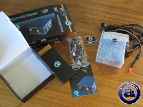 Inside the cardboard retail box are two things: The power supply itself enclosed in a pre-shaped bubble wrap, and another slim box to contain accessories. Only basic material is included with Tagan's ITZ 700W power supply -- a booklet, power cable, case sticker, and the power supply itself.