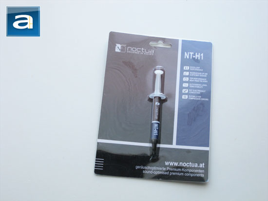 Our third contestant we have is the Noctua NT-H1, a 'relatively newcomer' to the thermal paste market (When we got it anyways, which is January this year haha). Noctua is known to produce quiet and efficient computer thermal solutions; and their case fans and heatsinks that are highly regarded in the enthusiast market for both performance and quietness. The Noctua NT-H1 thermal paste's packaging is done with a standard non-blister clear plastic packaging with cardboard backing. Both the tube of thermal paste and its retain package retains the usual Noctua colors of burgundy, black and blue. The thermal paste itself, again comes in the form of a syringe.
