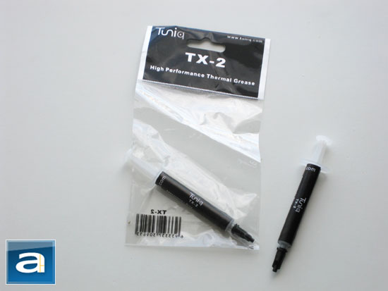 Pretty much all of the latest thermal pastes in the market right now are non-metal synthetic compounds. The Tuniq TX-2 is no exception, making this the third fully synthetic thermal paste that will be tested in today's report. Like Arctic Silver 5, the Tuniq TX-2 comes in a 3.5 gram tube -- no larger option is available. When it comes to application, the wet, easy to apply, and relatively light TX-2 compound behaves pretty much the same way Arctic Cooling's MX-2 does. Break in time is minimal; but I would give it around 2 days for peak performance. The 3.5 gram tube will probably last around 6 applications before it is all used up.