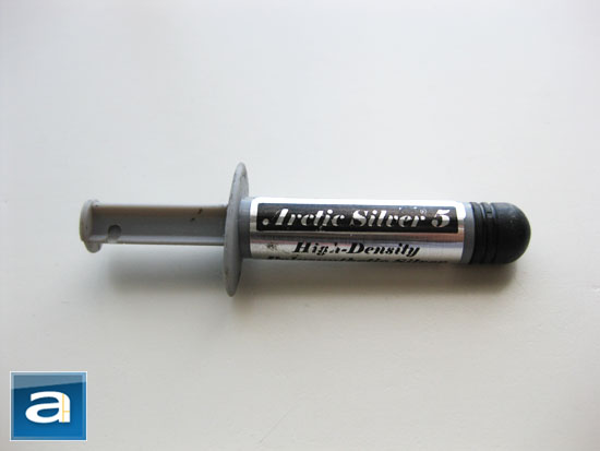 Arctic Silver 5 is a polysynthetic silver based thermal paste; which means it includes silver and multiple heat conductive synthetic ceramics in the paste. This makes the paste a very good conductor of heat, but even as it is formulated to conduct heat and not electricity, it is still somewhat conductive and can cause trouble in the right situation. Arctic Silver 5 needs about 200 hours of break-in time for it to reach its peak performance. It is available in a 3.5 gram tube and a 12 gram tube. A 3.5 gram tube will only last the user about 8 applications on average as per Arctic Silver's website. Realistically, the user would most likely only get around 6 applications. The 12 gram tube is much larger and would likely be able to last around 26 different applications as calculated.