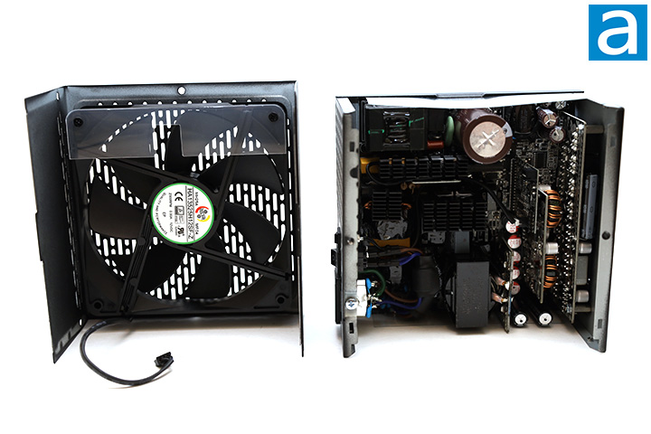 On-Bright Electronic's OB2365T is the PWM controller, located next to the bulk capacitor. Meanwhile, a Weltrend WT7502R monitoring IC, located on a vertical PCB next to the secondary stage components, provides over/under current and over/under voltage protection. The Microchip PIC16F1503 fan controller is located on the same vertical PCB. The datasheets for all components mentioned in this review can be found on their respective manufacturers' websites.