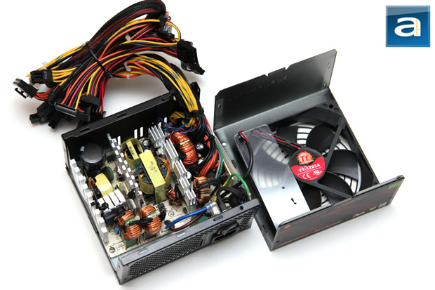 As always, we opened up our Thermaltake SMART 630W power supply to take a detailed look at what is going on inside. Please note that doing this at home will void your 5-year warranty, thanks to the warranty seal Thermaltake applied over one of the edges. But for the benefit of you, we cracked ours open so you don't need to, haha. There are no user serviceable parts inside.