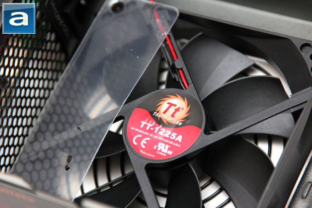 Lastly, we see a modestly sized 120mm fan that provides cooling to the Thermaltake SMART 630W's internal components. It is connected to the mainboard using a 2-pin connector via an adapter cable. Although it is not the largest fan you can fit in a standard ATX power supply, an overhead design provides lots of airflow at lower speeds for quiet operation in most cases. The fan is a Thermaltake TT-1225A, which is a rebranded Young Lin Tech DFS122512H. Further research indicates the TT-1225A/DFS122512H is specified at 0.28A for a maximum of speed of 1700 rpm. The rated airflow is 71.05 CFM and 20.59 Pa static pressure at 33.87 dB of noise.
