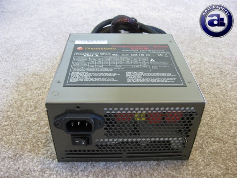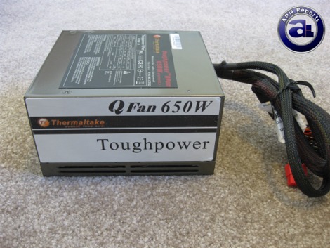 The right side of the power supply unit is a huge Thermaltake Toughpower badge to tell the world you have a Thermaltake Toughpower QFan 650W power supply inside your computer, if you have a windowed case that shows the power supply, that is. I am not a big fan of this, simply because I don't think I'll ever want big bold letters that attracts that much attention to the power supply.