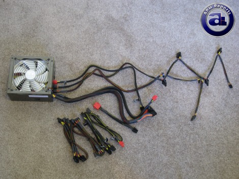 The cables are acceptable in length. There are two cables that are not modular; one is the ATX 24-pin connector, while the second one is, surprisingly, a PCIe 8-pin connector. I didn't quite understand the logic behind this, because all users would have to use the ATX 24-pin and EPS 8-pin/ATX 4-pin connector in a standard configuration, but not all standard configurations require an 8-pin PCIe. Of course, those who purchases this power supply probably has a PCI Express graphics card, but I am pretty sure that they would have a motherboard too (It's rare to see dual power supply configurations). Anyways, as mentioned earlier, the following modular cables are included: