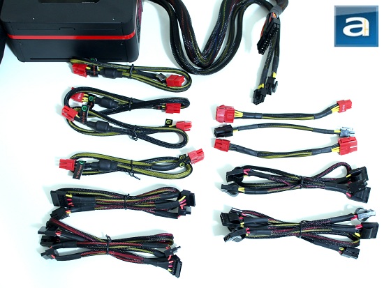 Eight modular cables are included out of the box. These cables should be long enough, even in computer cases with bottom mounted power supplies. Much like our Editor-in-Chief, I like to tuck my cables out of sight. I must say the hardwired the EPS/ATX 4+4 pin and EPS 8-pin cables are somewhat short at 55cm for a full tower, as all the cases I own has a bottom-mounted power supply -- and this cable has to reach quite a ways in order to be connected to the motherboard. This is standard length though. As mentioned on the previous page, the following cables are included: