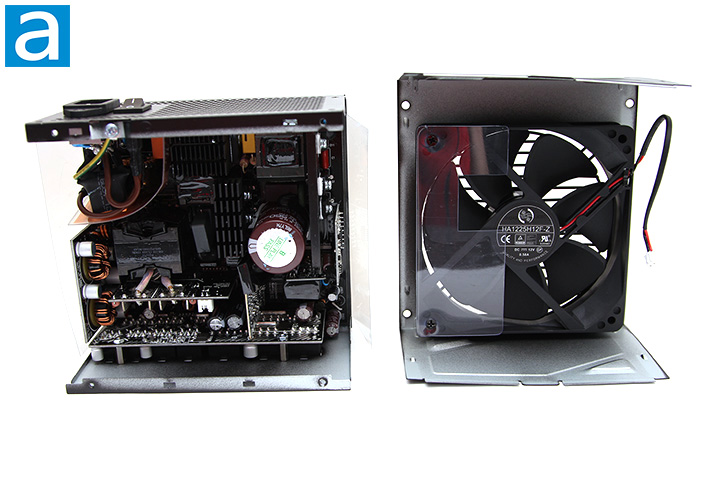 Lastly, we see a 120mm fan that provides cooling to the XPG Core Reactor 750W's internal components. It is connected to an add-in board using a 2-pin connector. A 120mm fan is rather small nowadays for a power supply with a bottom mounted fan, but if not a lot of heat is being generated, it should not be much of an issue. Ong Hua is the fan OEM with HA1225H12F-Z as the model number, as shown in our photo above. Further research indicates the HA1225H12F-Z is a fluid dynamic bearing fan specified at 0.58A for a maximum of speed of 2200 RPM. Fans with fluid dynamic bearings generally have much longer lifespans compared to sleeve bearing fans, and is quite suitable for this application.