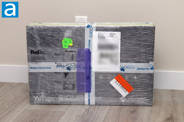 Today's monitor arrived from Todo Cheap's American offices in San Diego, California, USA. Traveling with FedEx and their International 2Day service, this monitor box arrived at the same time as our other recently received Yeyian products like the Agile NL, albeit this was in its own box and shrunk wrapped separately. Everything was sealed with tape and packing straps to prevent the monitor from being tampered with.