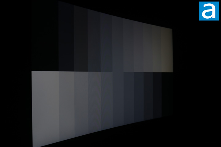 From the images above, you can see three different angles, with the first one being directly straight on, the next from the left side, and finally viewing from above the monitor. You can see how the different viewing angles makes for a slight difference on what the images look like, especially with the whites and grays. Directly head on, you can see a typical white to gray image. However, the color shifts a bit more to a sepia-like tone, especially on the farther edge, when viewed from the left side. Finally, viewing from above, you can see a bit of a tint shift, although it is not as extreme as when viewed horizontally off-axis.